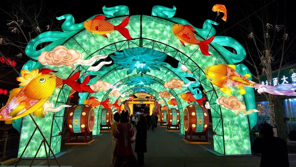 天津市西青区杨柳青古镇披上节日盛装,让每一位游客都能沉浸在浓浓的新年氛围中。