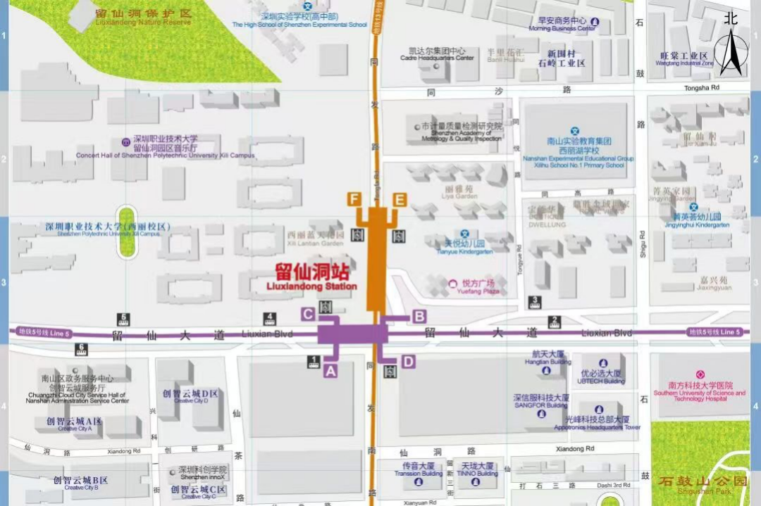 一期北段起自高新北站,终至上屋站,全长16.077公里,共设高新北站、西丽高铁站(越站运营)、石鼓站、留仙洞站、百旺站、应人石站、罗租站、石岩站及上屋站9座车站,途经8个区间。而上屋站和留仙洞站为换乘站,分别可换乘地铁6号线和5号线。一期北段通车后,从上屋站至深圳湾口岸站通行时间缩短至37分钟,可无缝换乘1、2、5、6等多条线路,彻底打通南北通勤壁垒。此外,13号线二期北延段(预计2026年通车)与13号线一期贯通运营后,将成为串联南山、宝安、光明三区的城市轨道交通干线,加强光明科学城与南山科技园、深圳湾超级总部基地的快速联系,缓解深圳西部南北向交通压力。