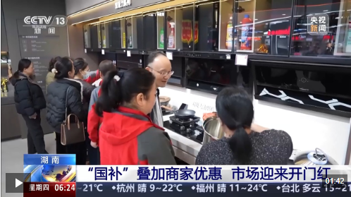 某电器专卖店负责人 欧海军:企业商家补贴加上厂家补贴,至高可以享受45%的补贴。1月1日到现在,我们销售额同比增长超过30%,政策红利精准激发了消费热情。