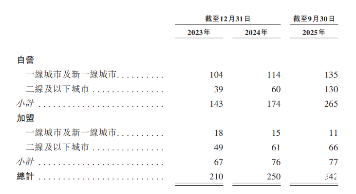 招股书显示,其预计2026年、2027年及2028年分别新开约120至180家、220至280家及270至330家门店,三年期间内新增合共约610至790家门店。