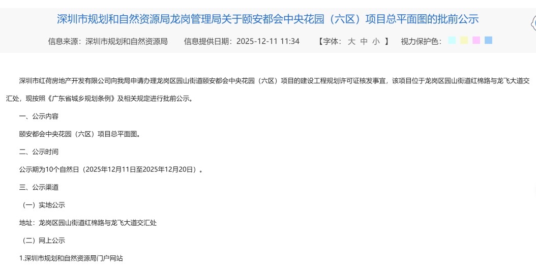 早在2020年,颐安·都会中央六、七期商业综合体官宣全面启动及开工建设。去年12月,项目迎来了新消息,颐安都会中央花园(六区)项目获总平面图批前公示,深圳市红荷房地产开发有限公司向深圳市规划和自然资源局龙岗管理局申请办理龙岗区园山街道颐安都会中央花园(六区)项目的建设工程规划许可证核发事宜。