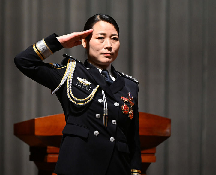 2月4日,司法部、人力资源社会保障部、河南省委在郑州召开表彰大会,授予王妙丽同志“全国司法行政系统一级英雄模范”“河南省优秀共产党员”称号。这是2月4日,王妙丽在表彰大会上。新华社记者 李嘉南 摄
