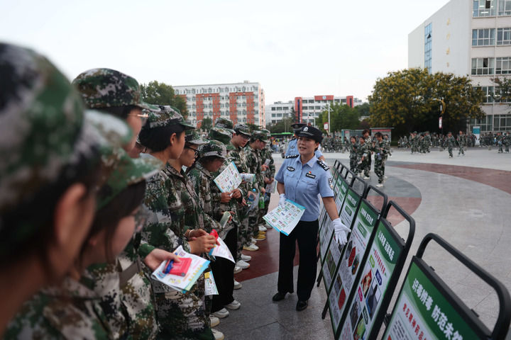2025年9月15日,王妙丽在漯河职业技术学院教学生们分辨毒品。新华社发