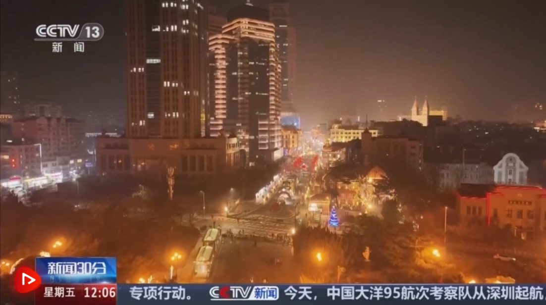 在山东青岛,百盏彩灯装点城区的大街小巷。五四广场上,以“骏马迎春,福至青岛”为主题的灯组精彩点亮。在中山路历史文化街区,骏马迎福、鱼跃龙门等数十组灯组同时点亮,夜幕下流光溢彩,市民游客漫步其中,感受浓浓年味。