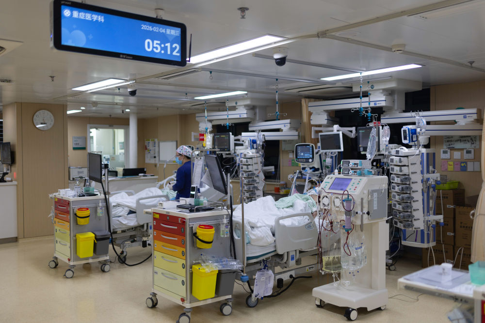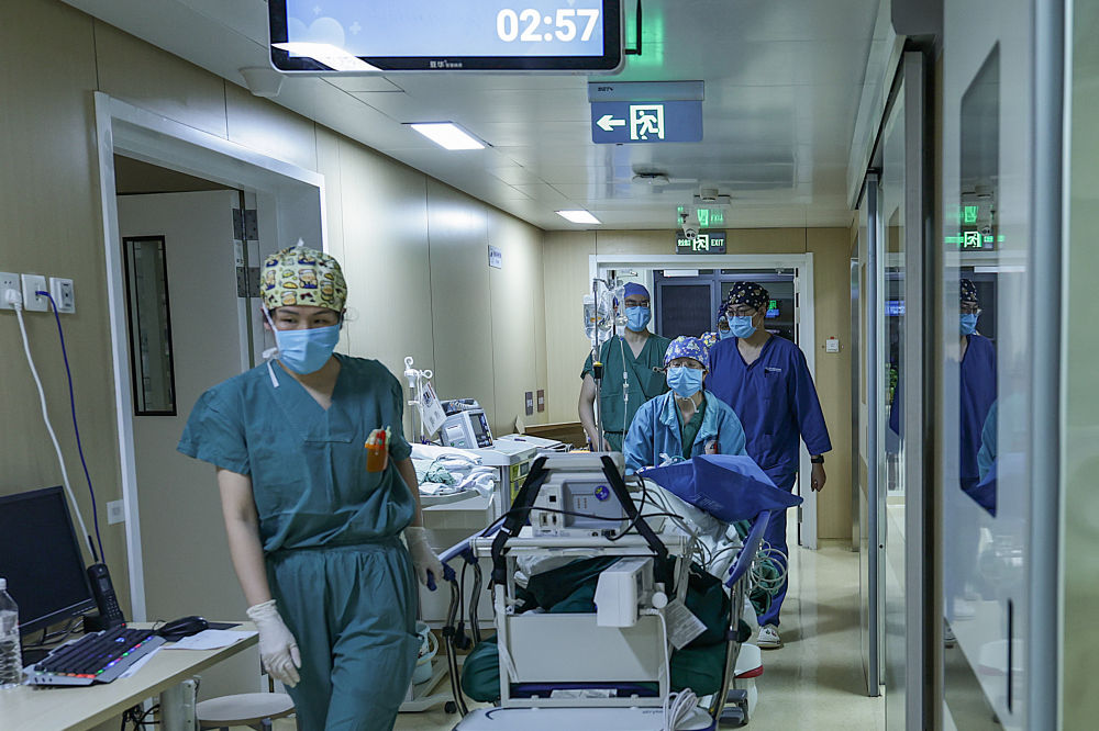 2月4日2时许,医护人员将一名刚做完手术的病人转移到重症监护病房。