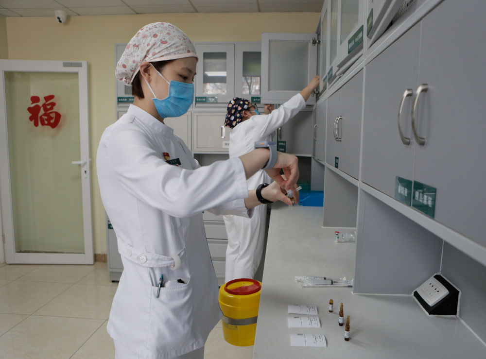 2月4日5时许,一名护士在急诊病房为患者抽血。