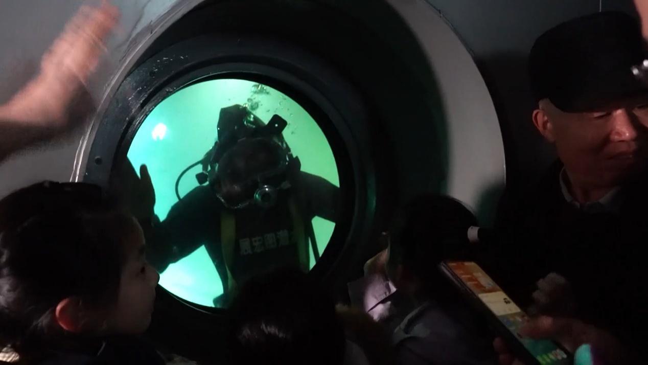 作为世界首座非潜水可到达的水下遗址博物馆,白鹤梁每天要迎接上千名游客。当游客透过观景窗看到了正在工作的潜水员,无疑是个意外惊喜。赵春霞尽可能回应热情的游客。