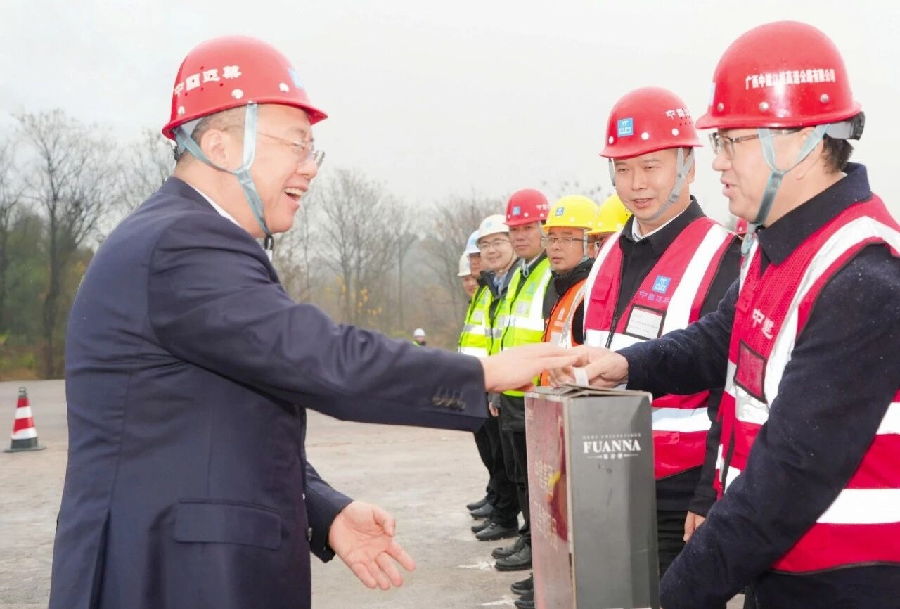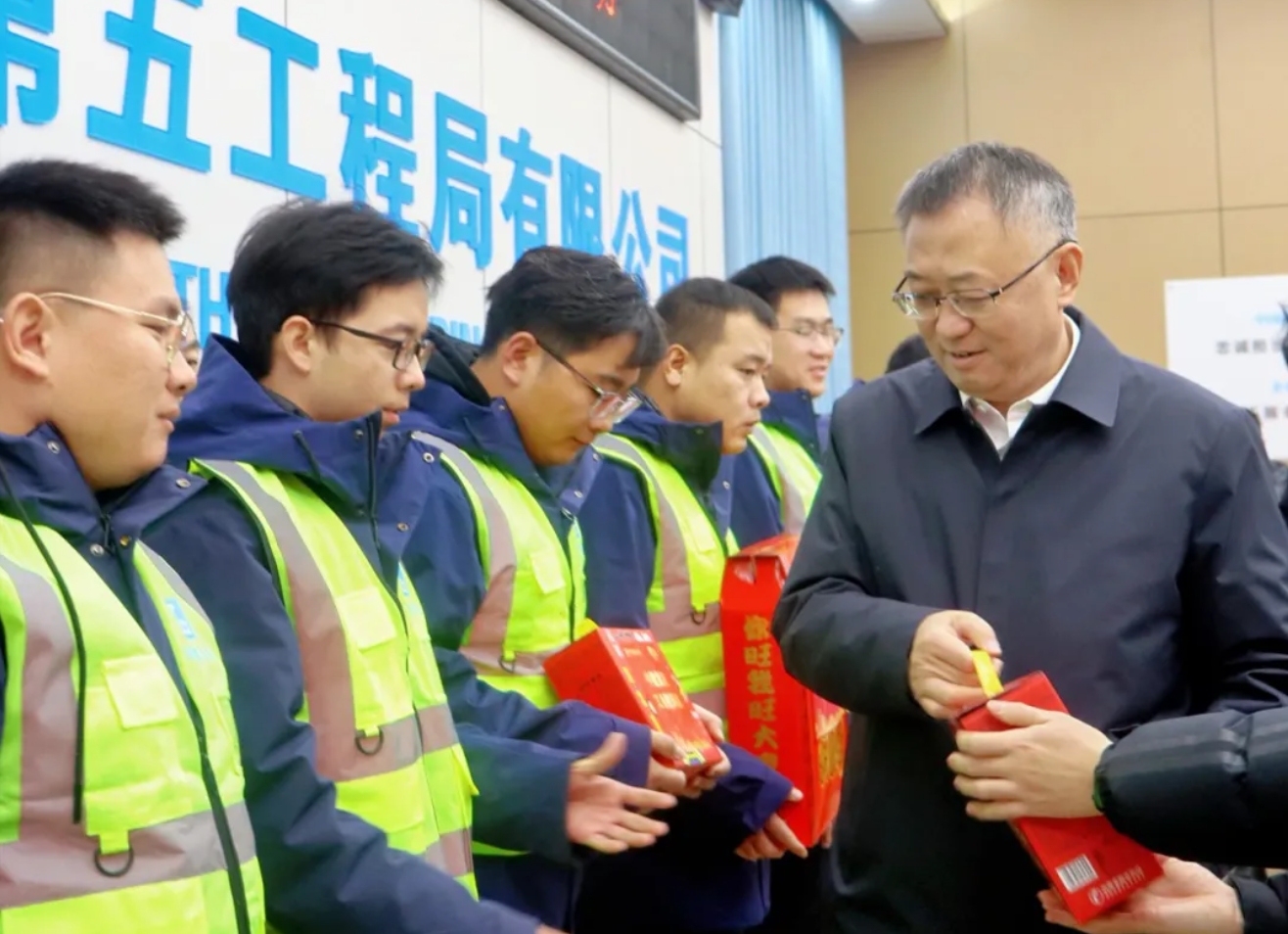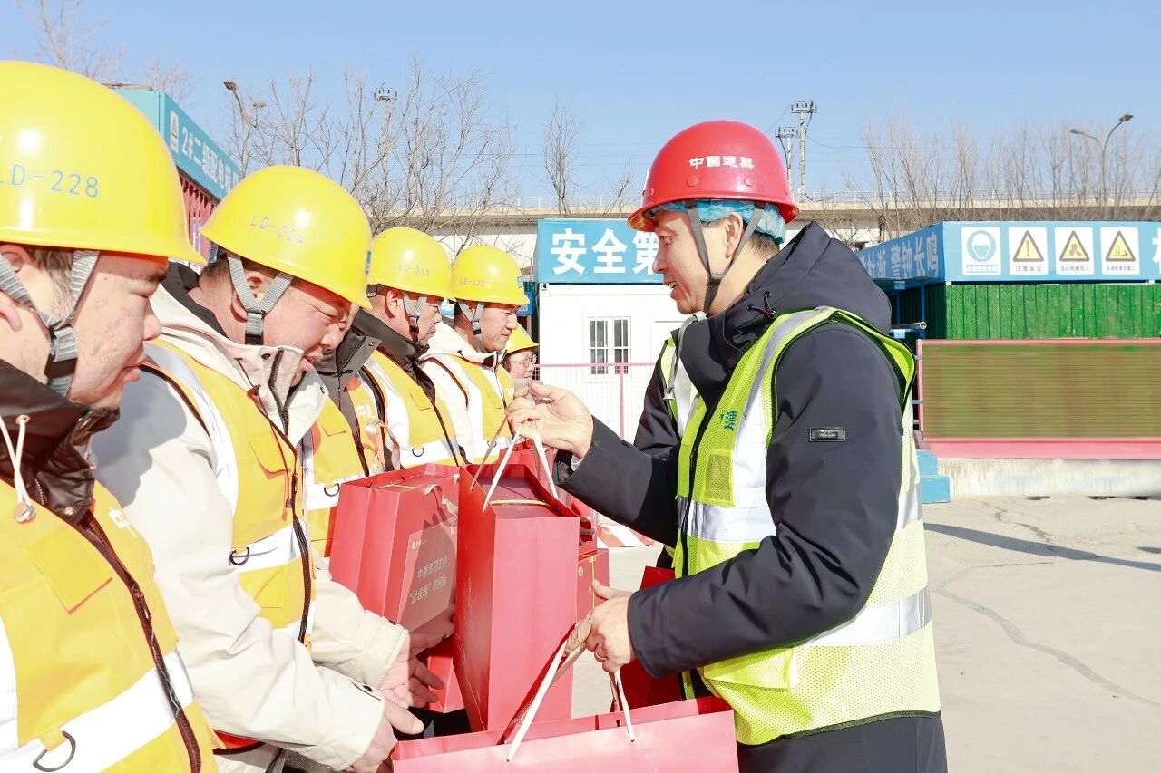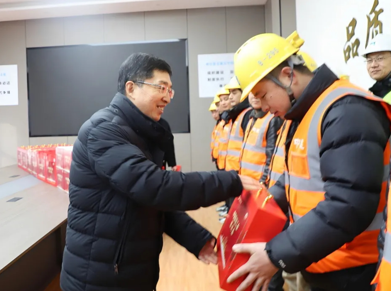 郑学选、文兵分别带队前往广西融福高速公路项目第六标段(六塘枢纽)、苍昭高速管养中心、北京园博园住宅三期工程1标段、国家矿产资源综合利用技术创新基地项目等重点项目,实地查看项目建设及运营情况,详细了解工程规划设计、安全管控、智能建造、运营管理、基层党组织建设等情况,并与项目建设者亲切交谈,为他们送上暖心的春节慰问品,叮嘱大家注意施工安全,祝福大家新春愉快、身体健康、工作顺利、阖家幸福。郑学选、文兵表示,过去的一年,集团上下全面贯彻党的二十大和二十届历次全会精神,锚定“一创五强”战略目标,党的建设和改革发展各项工作取得了新成效。这些成绩的取得,得益于全体员工与广大工友的拼搏与奋斗,离不开家属的理解与支持。希望全体中建人在新的一年凝心聚力、真抓实干,着力推进“抓规划、谋发展、深改革、促创新、塑品牌、强党建”六大任务,坚定信心、攻坚克难,努力推动企业稳步高质量发展,奋力实现“十五五”良好开局。
