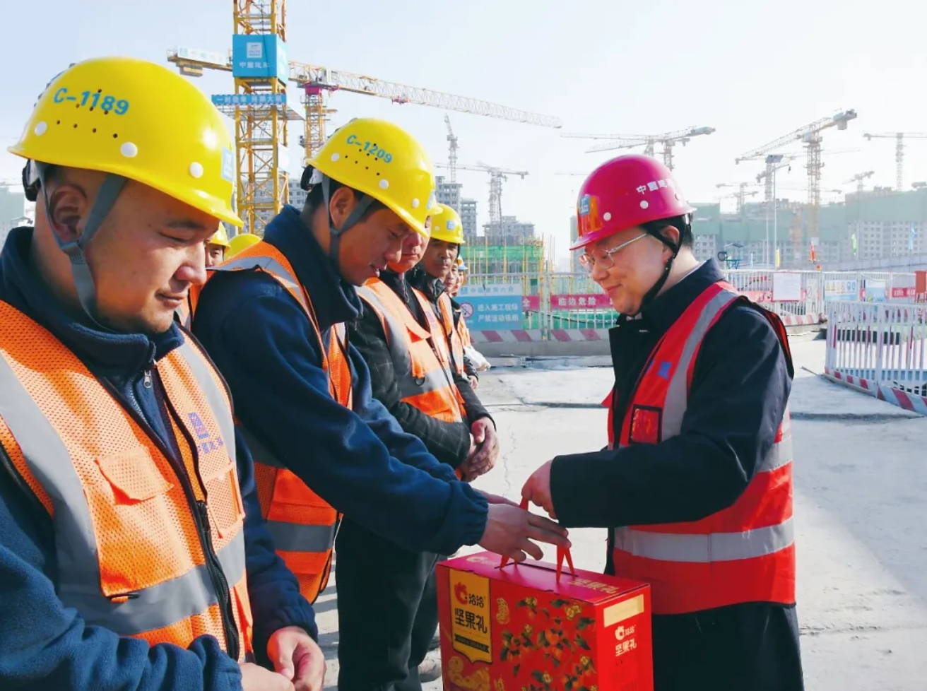 在农历马年春节即将到来之际,中建集团党组书记、董事长郑学选,党组副书记、总经理文兵,党组副书记、董事、工会主席单广袖,党组成员赵晓江、彭兴第、李永明、黄杰、吴爱国、陈勇分别带队前往集团所属重点项目,带班检查安全生产工作,看望慰问一线建设者,并向奋战在各条战线的海内外员工及其背后支持奉献的家属致以亲切问候和新春祝福。