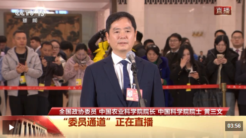 今天(3月4日)下午,全国政协十四届四次会议首场“委员通道”在人民大会堂举行,全国政协委员、中国农业科学院院长、中国科学院院士黄三文接受了总台记者采访。