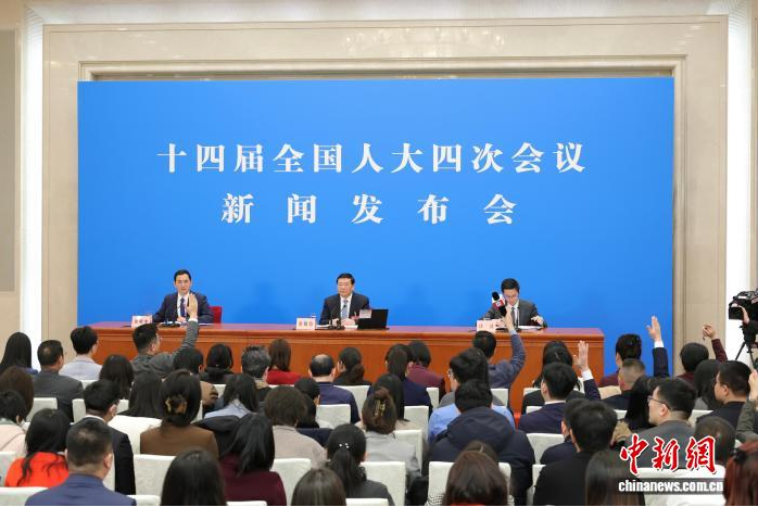 3月4日,十四届全国人大四次会议在北京人民大会堂举行新闻发布会。大会发言人娄勤俭就大会议程和人大工作相关问题回答中外记者提问。 中新社记者 蒋启明 摄