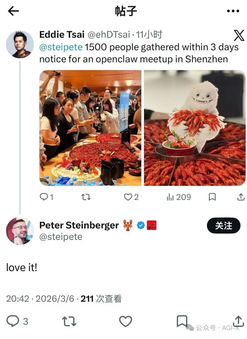 ▲OpenClaw创始人Peter Steinberger点赞