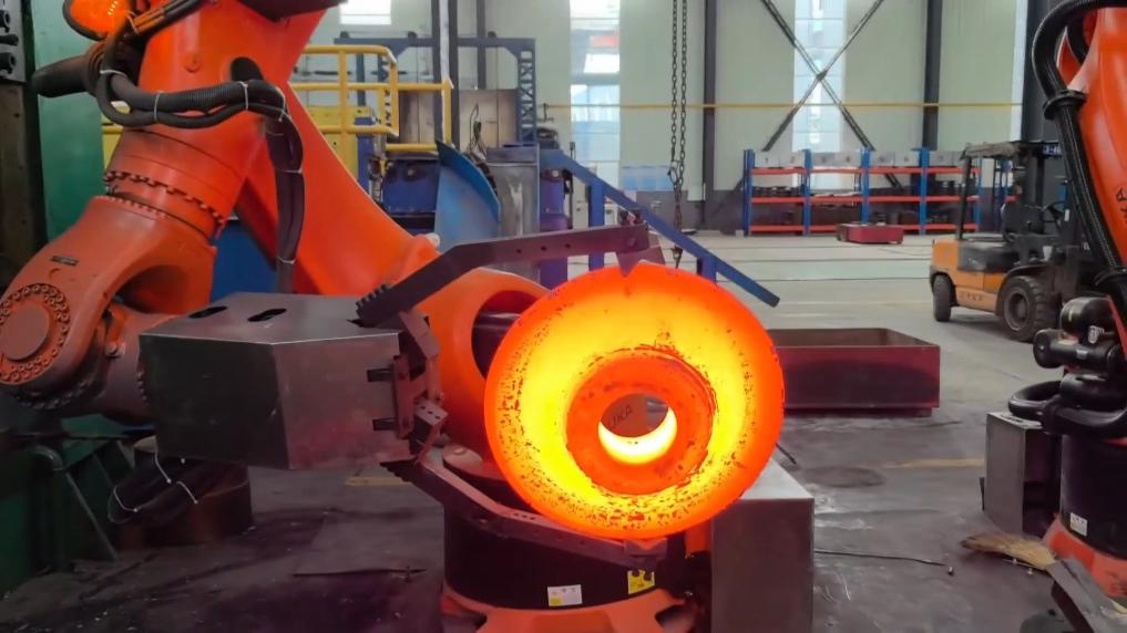 近年来,山西定襄锚定“绿色低碳”“智能制造”方向,持续推动法兰产业“脱胎换骨”,通过研发新工艺、新技术,拓宽产品种类,优化产品结构,提升产品附加值,引进智能生产线和锻造机器人,实现从“人工锻打”到“智能制造”的跨越。
