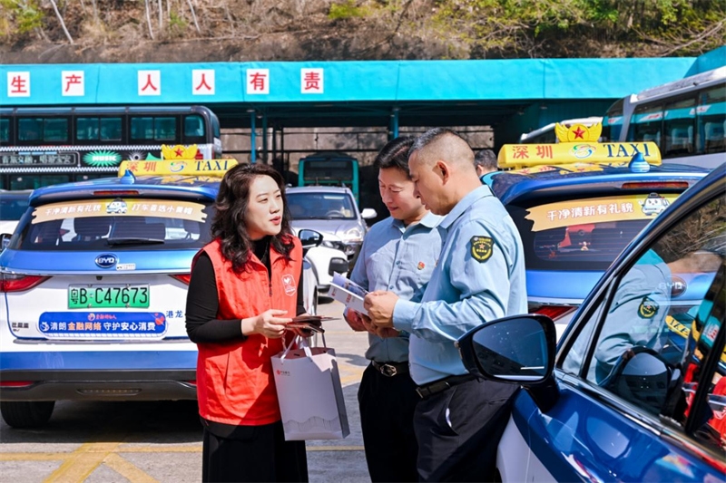 中信银行深圳分行联合广电集团及本地出租车企业,组建“金融随行”主题出租车队。车身张贴统一设计的消保车贴,车内摆放金融知识折页,椅背显示屏循环播放反诈短视频及公益海报,让穿梭于大街小巷的出租车成为“流动的金融安全课堂”。同时,各网点积极对接周边的快递站点,利用从业者晨会、工间休息等碎片化时间开展“送课上门”微宣讲,重点讲解互联网贷款乱象防范、征信修复骗局识别、职业背债人风险、非法代理退保理赔、个人信息过度索取等内容,精准守护新就业形态劳动者的“钱袋子”。