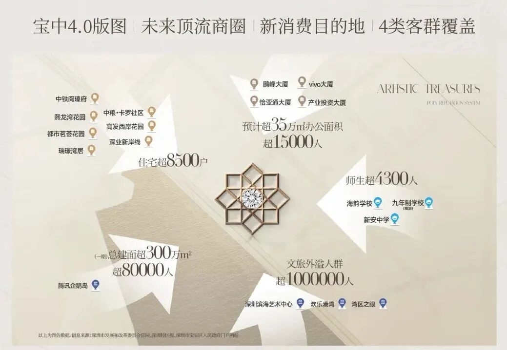 由前海壹方城+网红打卡点欢乐港湾+宝安大仟里等顶流IP形成的“打卡文旅地标-体验商圈消费”的消费动线,带来的人流红利将持续辐射周边。