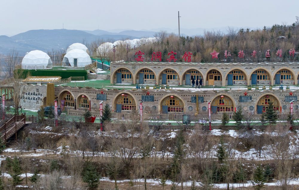 这是2月3日拍摄的宁夏固原市西吉县龙王坝村的窑洞宾馆(无人机照片)。新华社记者 杨植森 摄
