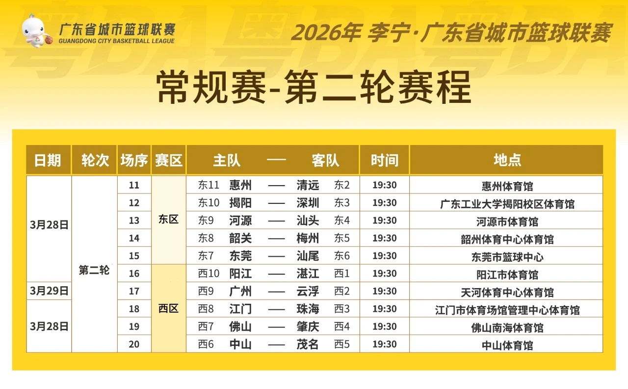 粤BA常规赛第二轮即将打响,十座城市的球场战火点燃。