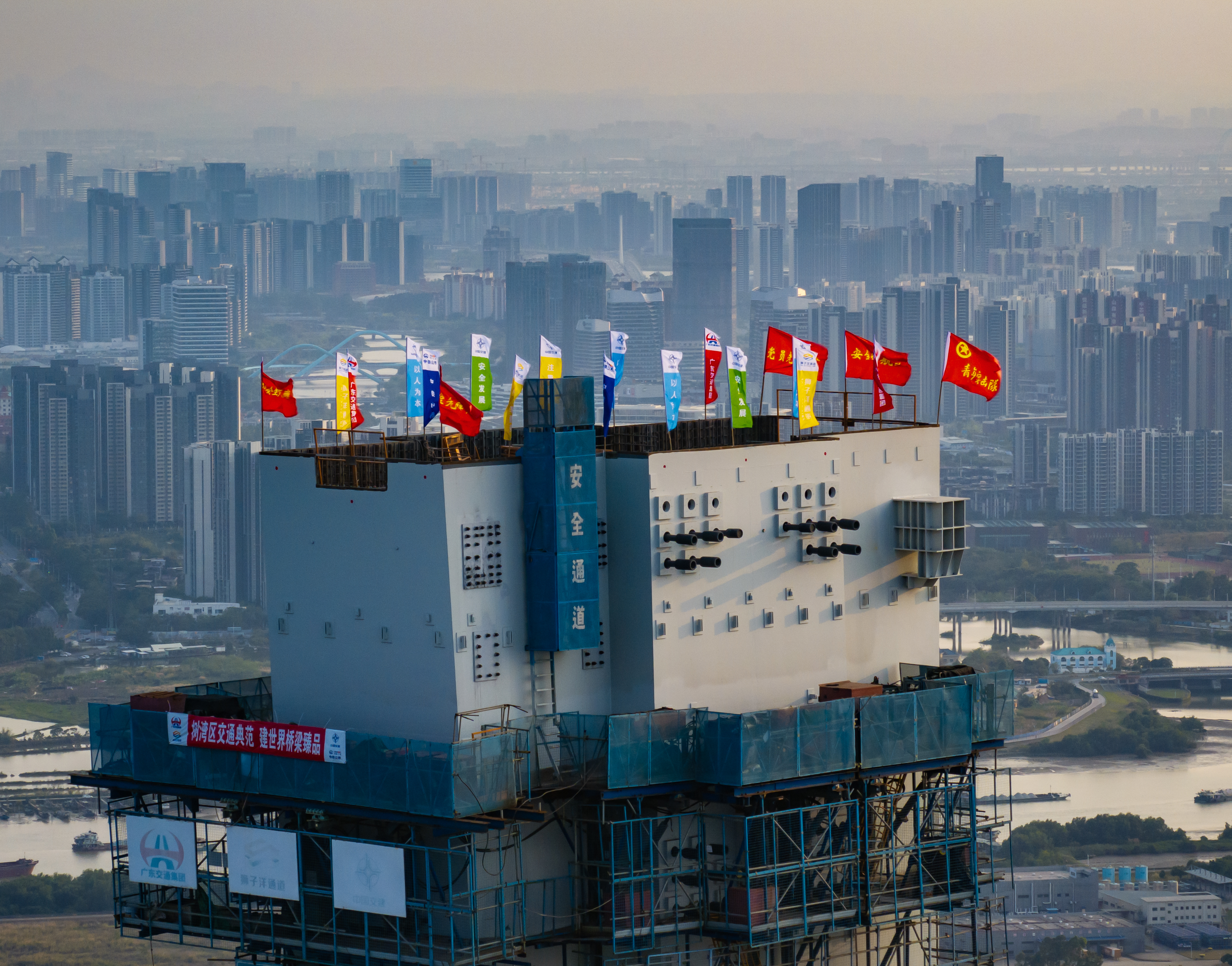 桥塔钢壳节段由工厂自动化生产线预制,运抵现场后采用全球最大移动平衡重塔式起重机R20000-720吊装,配合519种碰撞风险算法,保障极端环境下的毫米级吊装。吊装过程中,北斗高精度定位系统与云端平台实时联动,动态采集数据、规划最优路径,数据回传数字孪生系统复核,形成闭环管控。