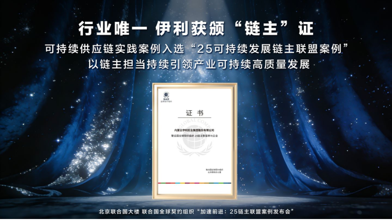 这份荣誉,属于全产业链!近日,伊利受邀出席联合国全球契约组织“加速前进:25链主联盟案例发布会”,获颁“联合国全球契约组织 25链主联盟参与企业”证书;并成功入选“25可持续发展链主联盟案例”。