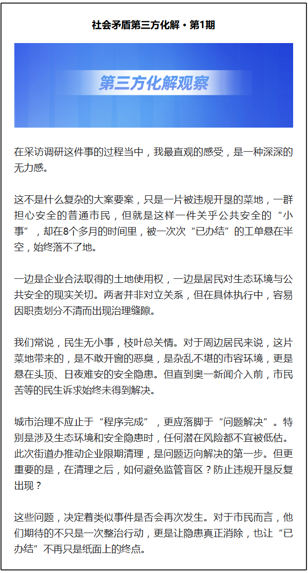 企业红线内的违规是否无法监管?“菜地”是否存在滑坡风险?谁来管,怎么管?这一系列问题,成为横亘在市民诉求与相关部门监管责任之间的待解焦点。
