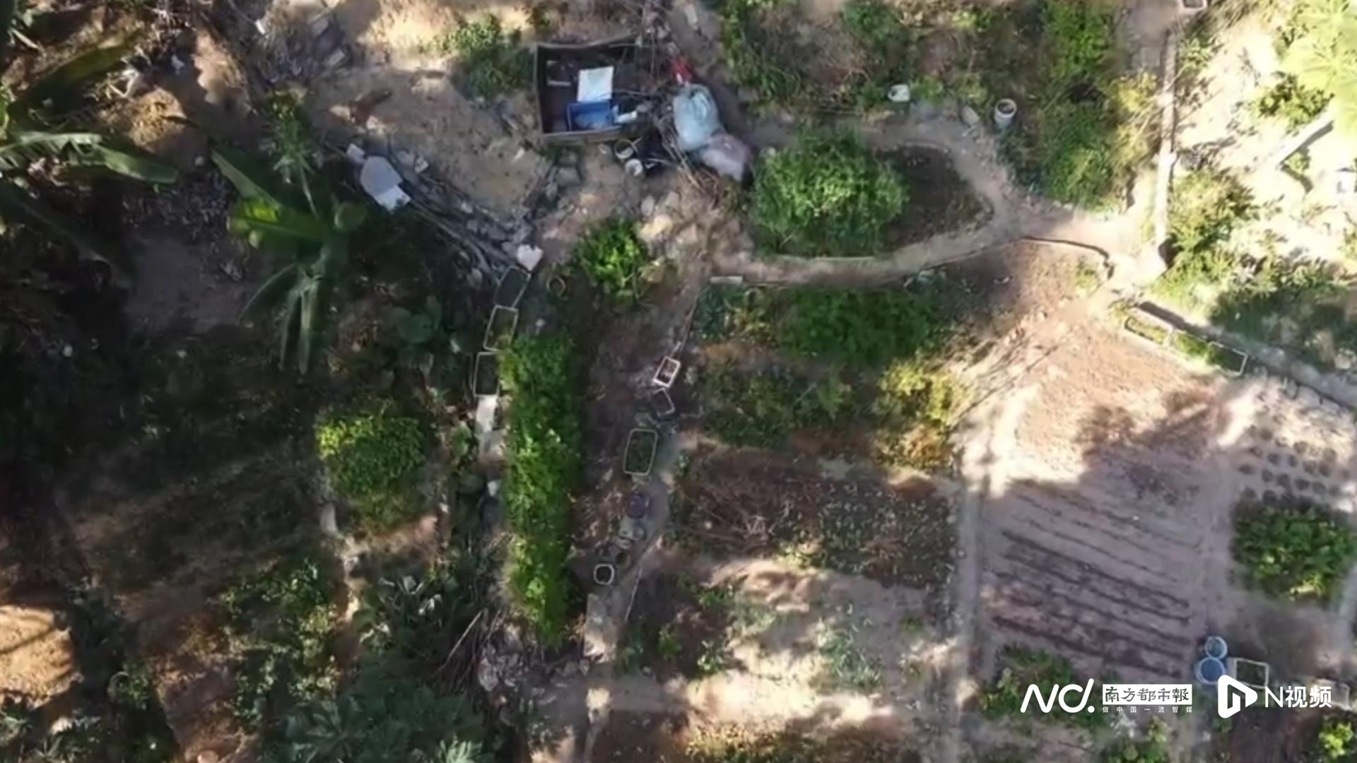 据刘先生向奥一新闻记者提供的现场视频与图片,原本覆盖着茂密植被的区域,如今已被大面积铲除,露出大片黄褐色的裸露土体。现场被人为开垦成数块菜地,小的仅有三四平方米,大的超过二十平方米,地里种满了家常蔬菜,部分地块还搭起了围挡支架,挂上了塑料袋、围布等遮挡物。