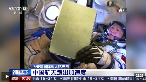 2003年10月15日,当神舟五号载人飞船从中国酒泉卫星发射中心升空,航天员杨利伟进入预定轨道,中国由此成为世界上第三个独立掌握载人航天技术的国家。在飞行过程中,杨利伟写下了“为了人类的和平与进步,中国人来到了太空”这句话,并通过舱内摄像机向全国人民和世界展示。