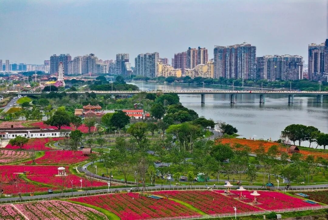 福建漳州市将生态修复与城市更新深度融合,在九龙江西溪南岸分批推进龙江岁月城市更新项目。这是4月11日拍摄的漳州龙江岁月景区及周边城市景观。新华社记者 姜克红 摄