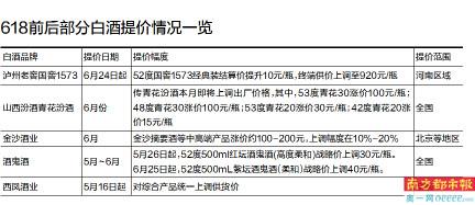 山西汾酒在4月份上调42度玻汾和53度玻汾供货价,5月份对上述两款酒的终端标牌价分别上调至49元和58元之后,本月又传出将对旗下青花汾酒进行调价。消息称,青花汾酒本月即将上调出厂价格,其中,53度青花30涨价100元/瓶;48度青花30涨价100元/瓶;53度青花20涨价30元/瓶;42度青花20涨价15元/瓶。