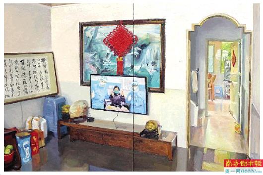 油画系的游钦煌还在家中办了一场个展,吸引了不少艺术爱好者前去参观。游钦煌说:“疫情之下,宅在家是人们共同的生活主题。我选只画这一家人的生活,用绘画去记录普通家庭平凡质朴的状态。最终在这所房子里,在这个创作的现场,就举办了毕业展览,也为这段特殊的时刻留下特殊的痕迹。”