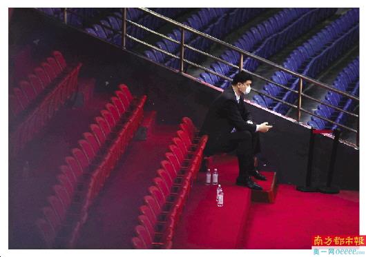 而场馆内部也是按照绿黄蓝三色划分开了不同证件人群,进馆前大家都要在安检口接受红外线体温测试,入馆后除了比赛过程中的球队和裁判可以不戴口罩外,其他人都必须戴上口罩。比如前天赛后,某队主教练带着队员来参加发布会时由于来得匆忙,一时忘记佩戴口罩,都立刻被拦下并要求戴好口罩后,才能接受记者采访。而采访过程里,无论是在混采区还是发布会现场,受访者与媒体记者都被隔出了2米多的距离,长长的收音杆也成了现场一大趣点。