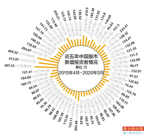 根据中国结算官网公布的数据,3-5月,新增投资者数量都实现了超100万户的增长,5月当月新增投资者账户数量121.41万个,同比增长5.34%。截至2020年5月末,投资者账户数量合计1.66亿个。