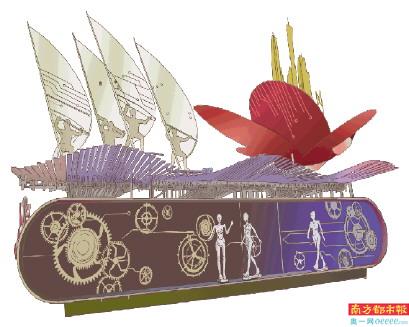 在庆祝中华人民共和国成立70周年群众游行中,“扬帆大湾”广东彩车惊艳亮相,通过“千帆竞发”“英雄木棉”“数字海洋”“智慧城市”等元素及现代的设计语言,展示广东的发展成就。