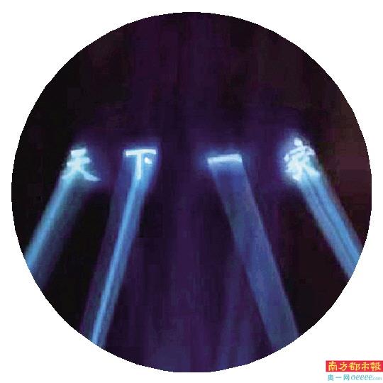 除了无人机表演,此次深圳暖场表演中的亮点还包括可以在云层上写字的激光投光灯。四条耀眼的激光光柱冲上云霄,在云上写出“天下一家”,并在云端展示“五环”标志,极具视觉震撼力。传统的投影距离一般在500米内,为何暖场表演上的字体能在云中呈现?光峰科技工程事业部总经理张峰告诉南都记者,此次运用的技术在30米~3000米范围内都可以成像,目前业界同类产品最高亮度为6万流明,而此次的投光灯亮度达到10万流明,所以远距离成像人眼也可见。